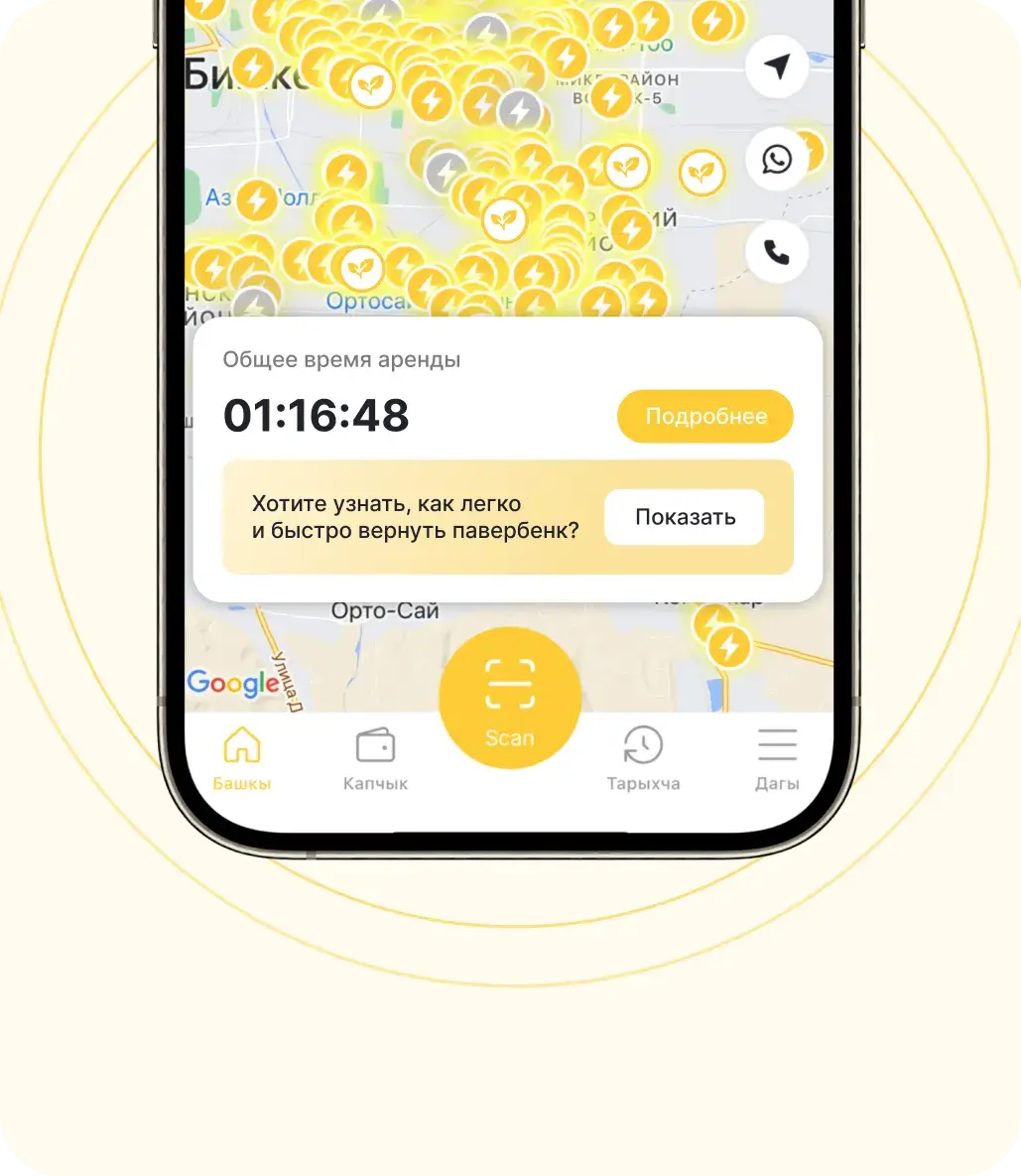 Наши станции расположены по всему Кыргызстану, так что вы всегда сможете найти ближайшую и зарядиться в любой момент.